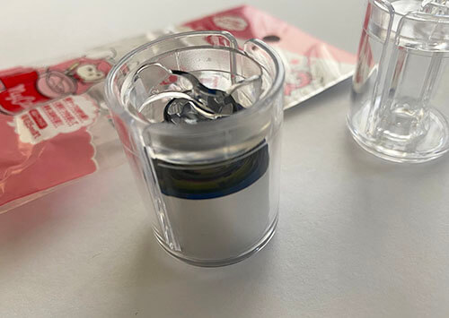 サンリオキャラクターのかわいらしいドリンク型のキーホルダーでパッと見はただのキーホルダーに見えますが上部が開くので中に銀テープを入れる事ができます
