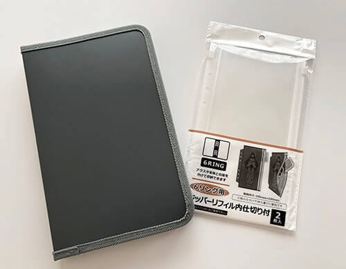 100均「セリア」では”6リングファスナーケース”などが販売されています
