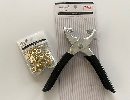 こちらは100均candoで購入しました、ハトメパンチは110円ではなく330円ですが手芸用品店・ホームセンターなどで購入するより安価だと思います