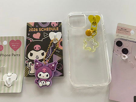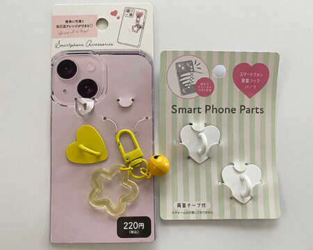 「スマホチャーム」(220円)、「背面フックパーツ」(110円)