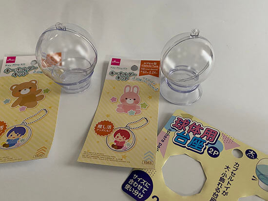 ダイソー:球体用台座 | セリア:カプセルのあし | カプセル台座 | カプセルキーホルダー