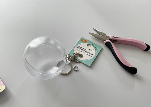カプセル型のキーホルダーを作れるキットです上に吊り下げる為の部分がありますが、そこ以外はほぼガチャガチャカプセルに見えますよね