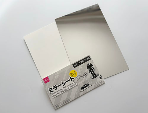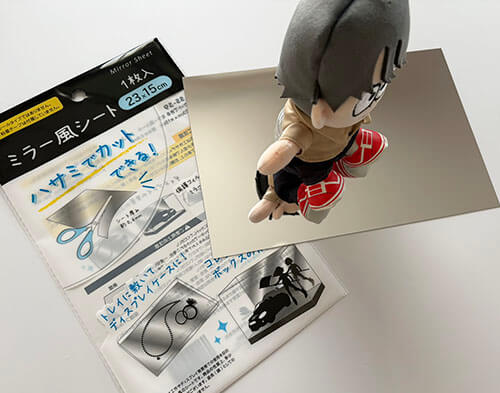 鏡は映ったものを反射して映すので鏡シートをディスプレイの背景、壁などに貼ると奥行がでたり広く見えたりする効果もありつつ、フィギュア・プラモなどの見えにくい背面もミラーシートを使えば動かす事なく見る事ができます