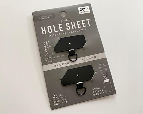 ダイソー ストラップホールシート ステンレスワイド「ストラップホールシート ステンレスワイド2P」(220円)